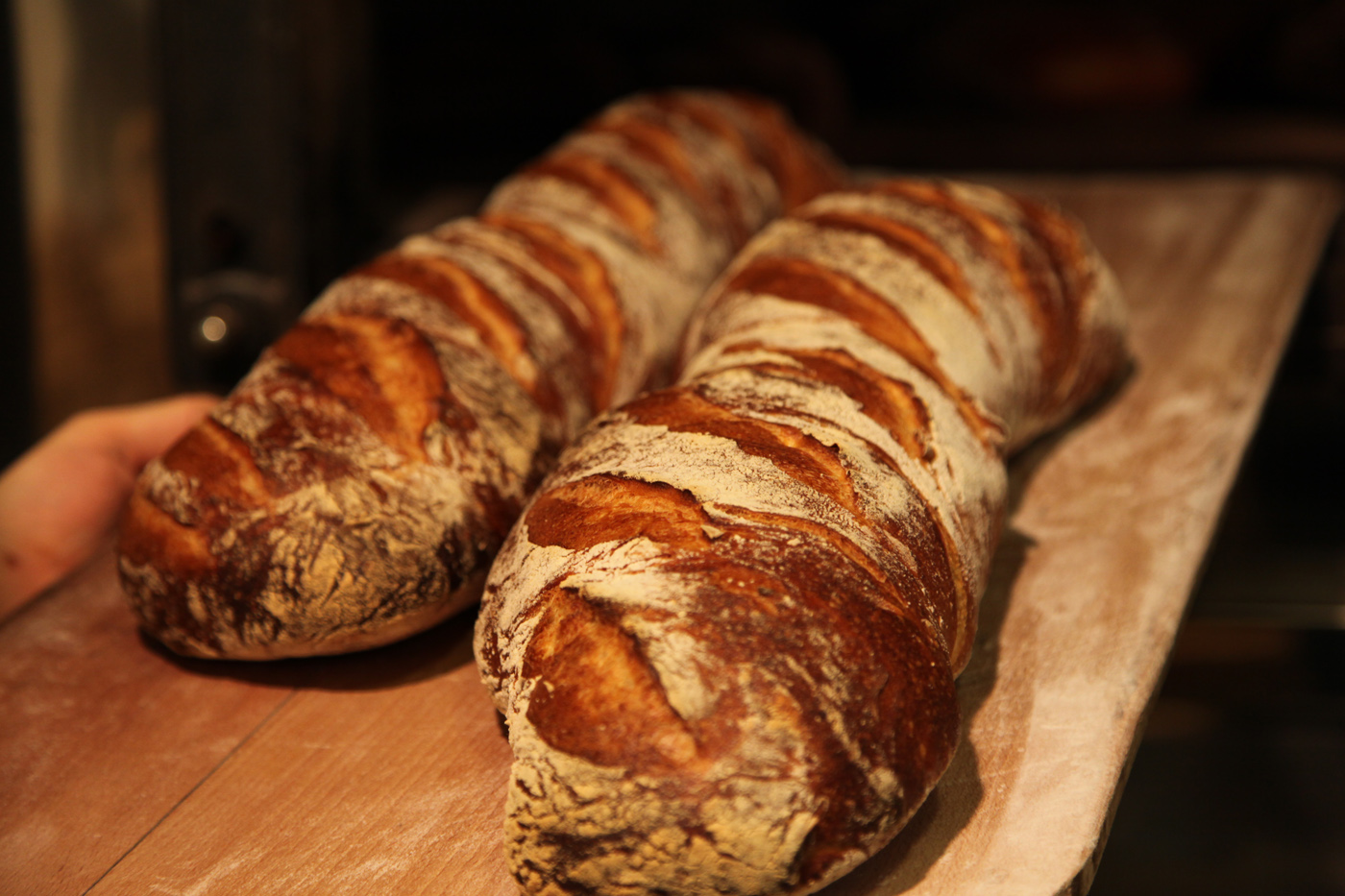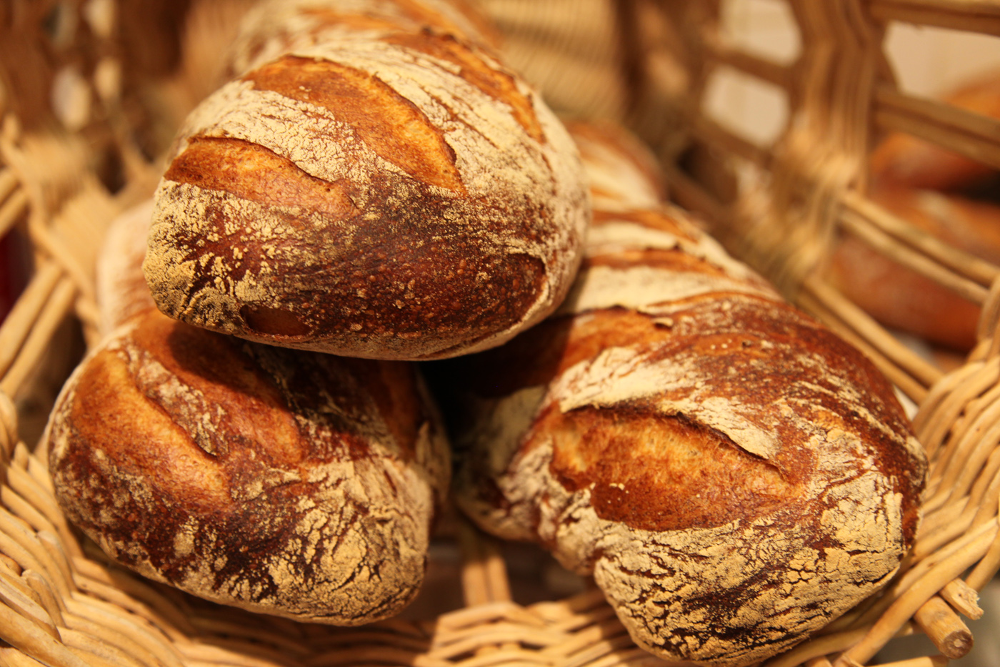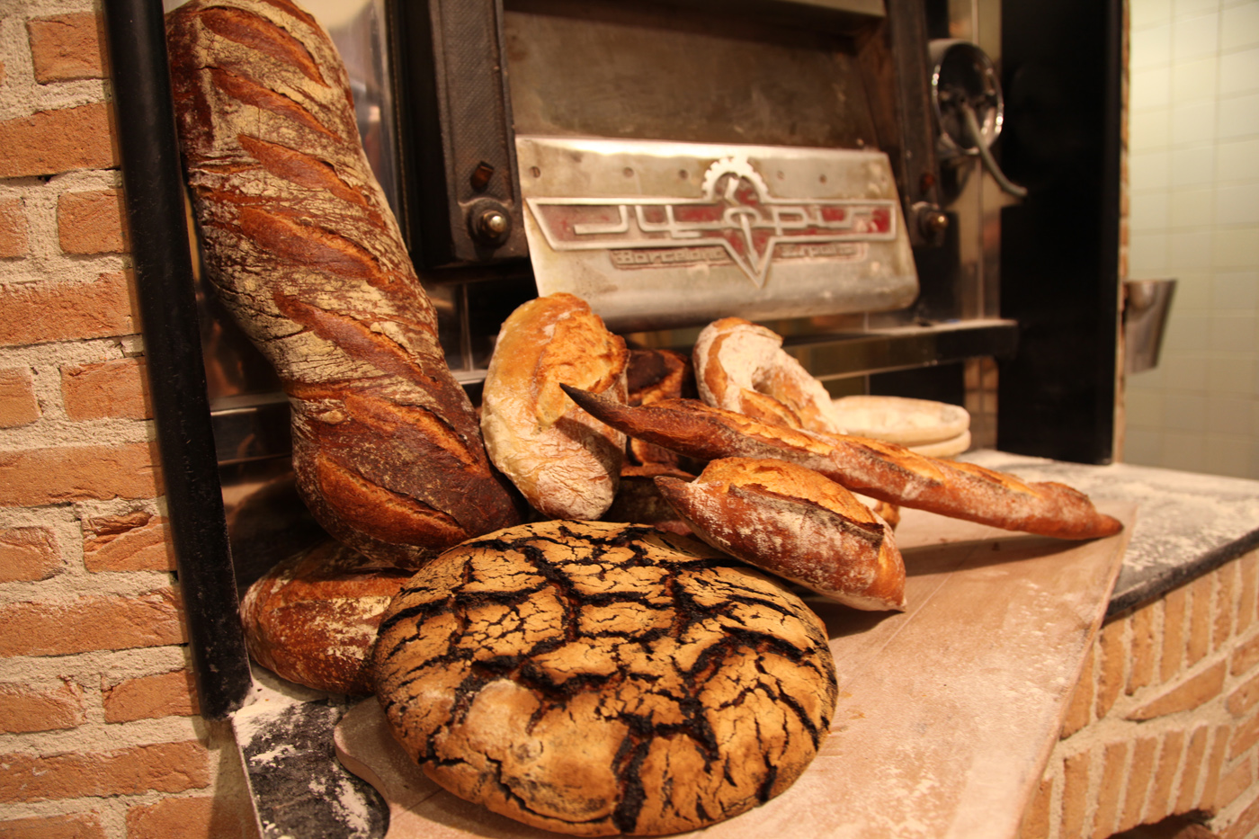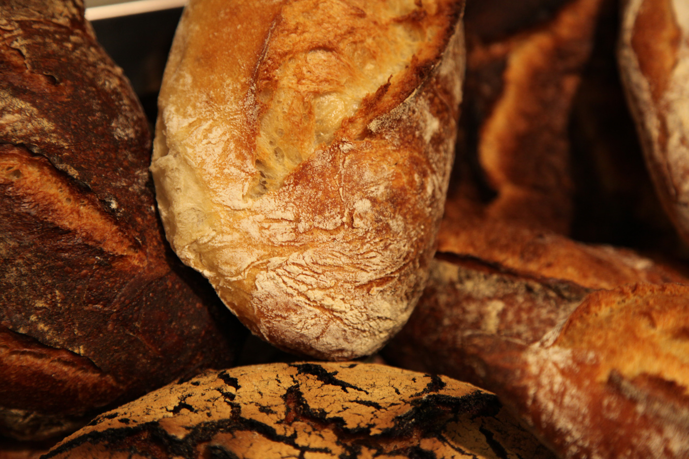 Tous nos pains sont fabriqués sur place avec des farines locales, du levain naturel maison entretenu, chaque jour, par nos boulangers, avec des fermentations longues de 24h minimum pour développer les goûts et les arômes.