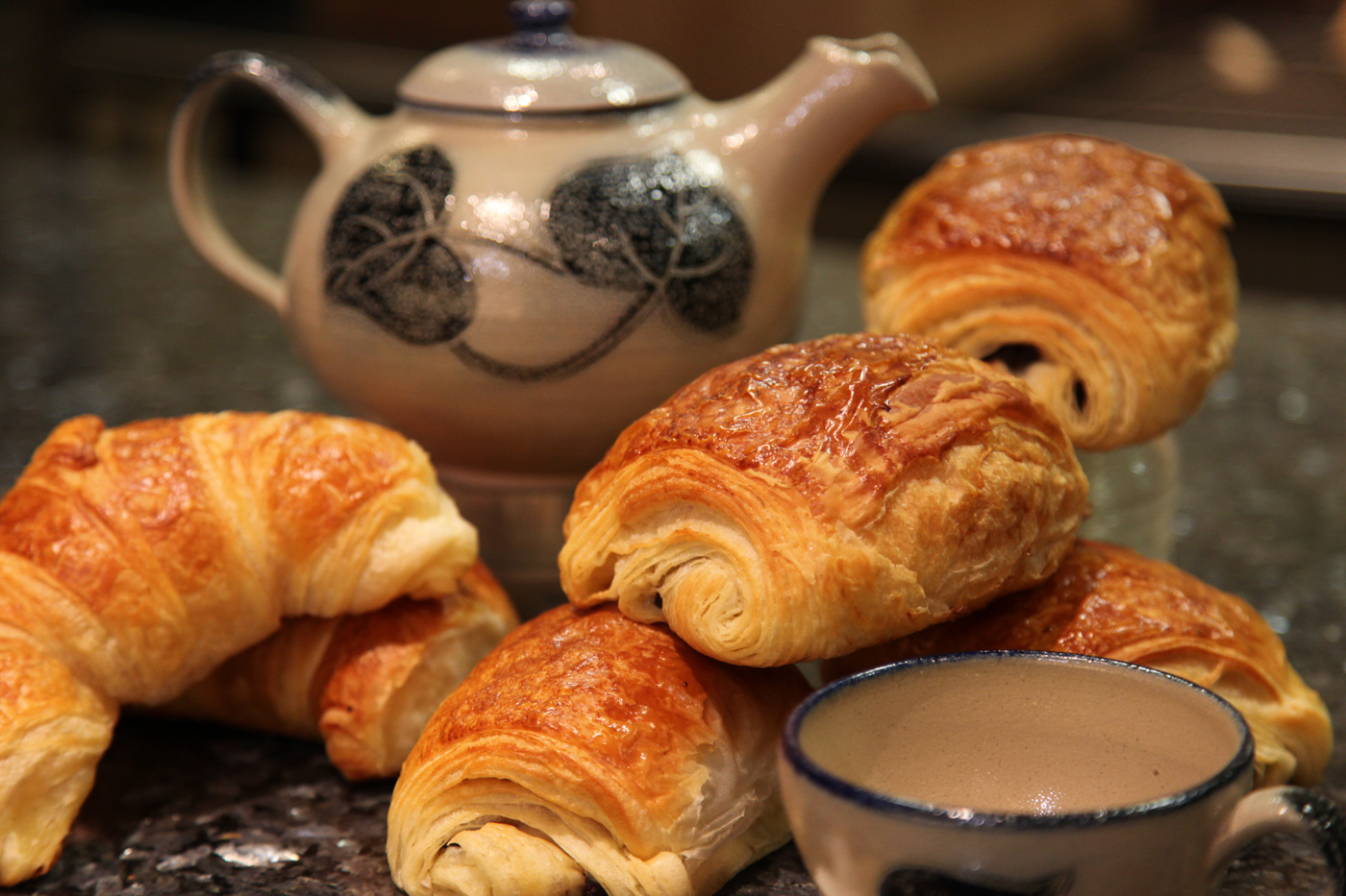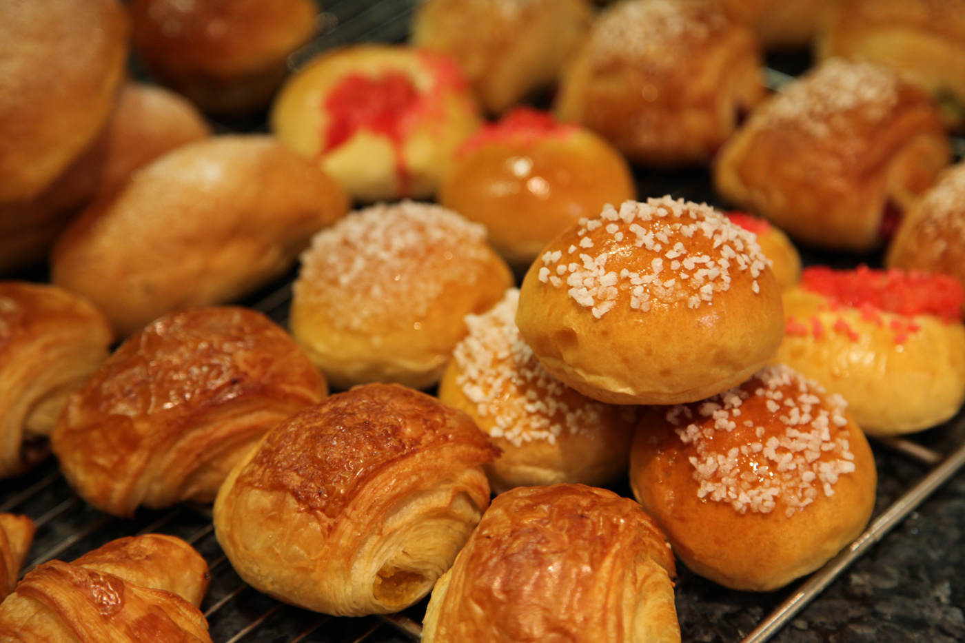 Croissants, pain au chocolat avec 3 barres, brioche nature ou chocolat ou sucre, coquilles, suisse…